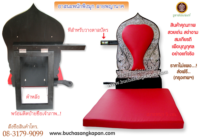 อาสนะพนักพิงมุก ลายพญานาค สำหรับถวายวัด ใช้ในงานพิธีต่าง ๆ