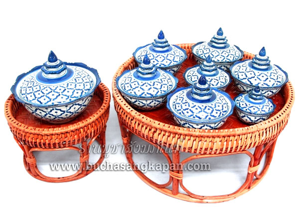ชุดพานโต๊กลายคราม ชุดถวายข้าวพระพุทธ