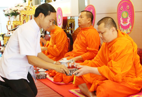 - ขอพระสงฆ์ จงรับ ซึ่งภัตตาหาร กับของที่เป็นบริวารทั้งหลายเหล่านี้