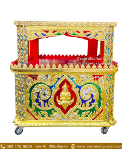 เชิงตะกอน ไม้เนื้อแข็ง แกะลาย ปิดทองประดับกระจก