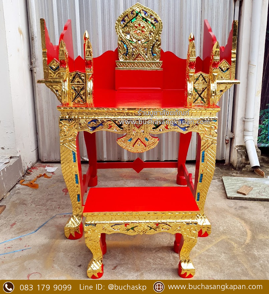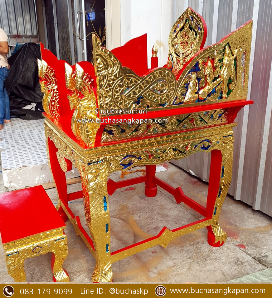 ทำด้วยไม้เบญจพรรณ แกะสลักลายไทยวิจิตรงดงาม