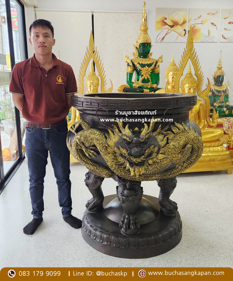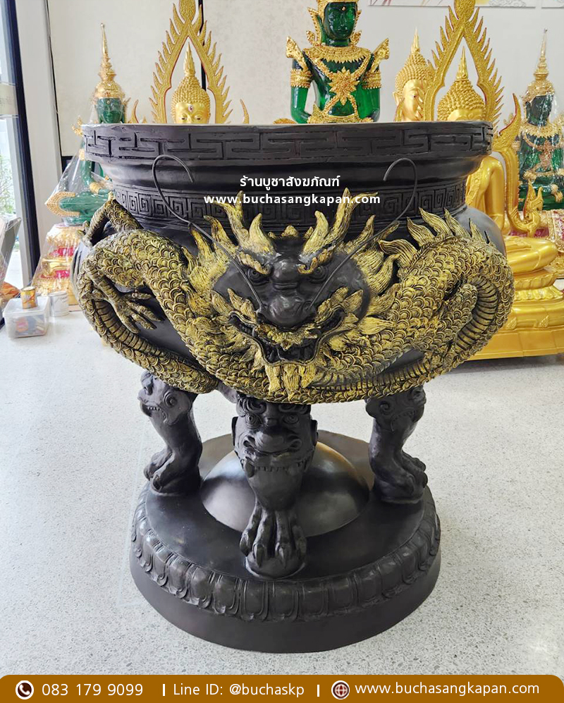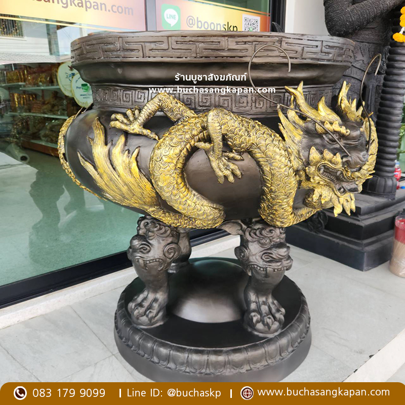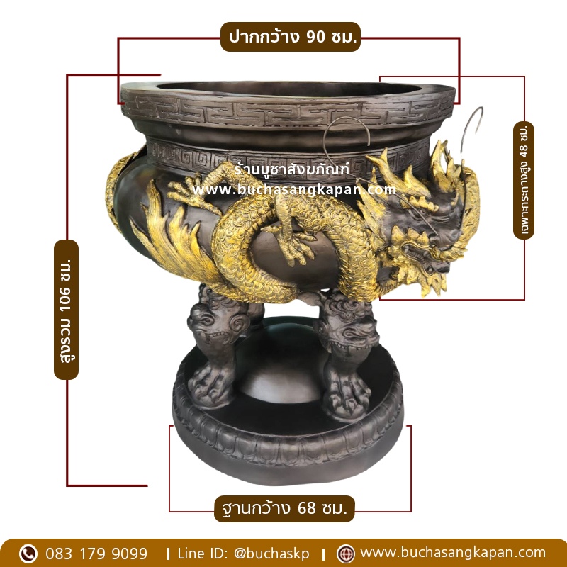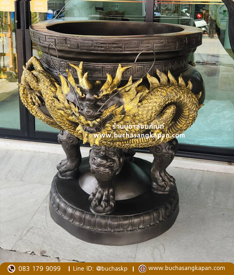กระถางธูปมังกร ทองเหลือง ขนาด 90 ซม.