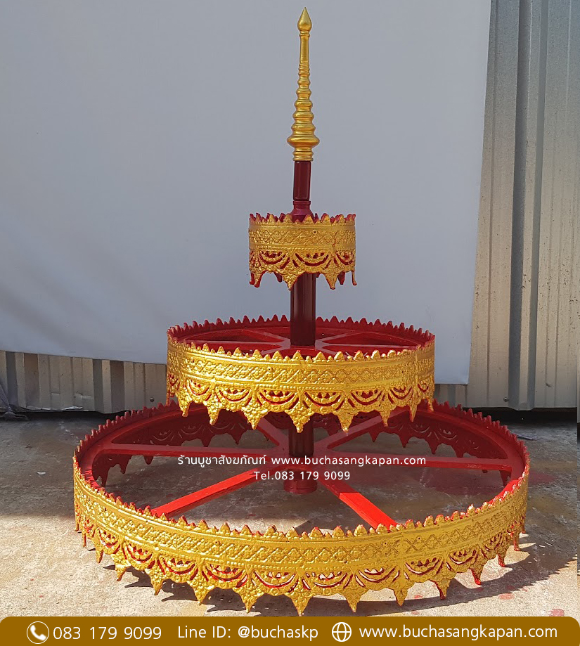 ฉัตรอัลลอยด์ ในร่มปิดทองเค ขนาด 40 นิ้ว 5 ชั้น ( แบบย่อความสูง )