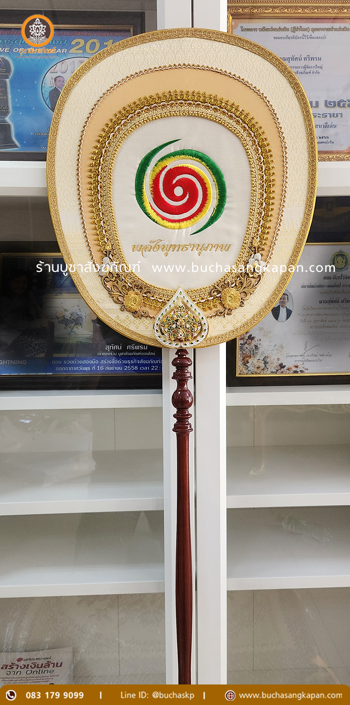 ตาลปัตรผ้าประดิฐ สีครีม ( พลังพุทาธานุภาพ )
