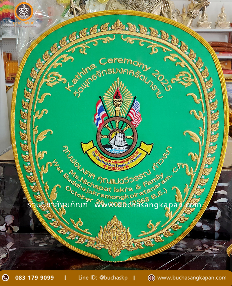 ตาลปัตรผ้าไหมแท้ สีเขียว ( วัดพุทธจักรมงคลรัตนาราม )