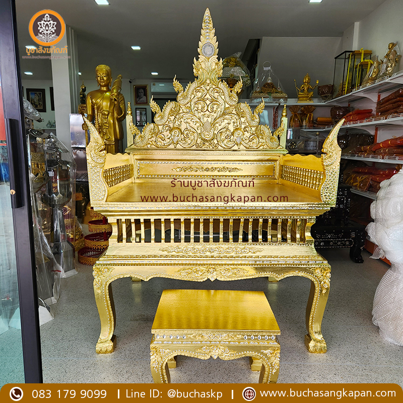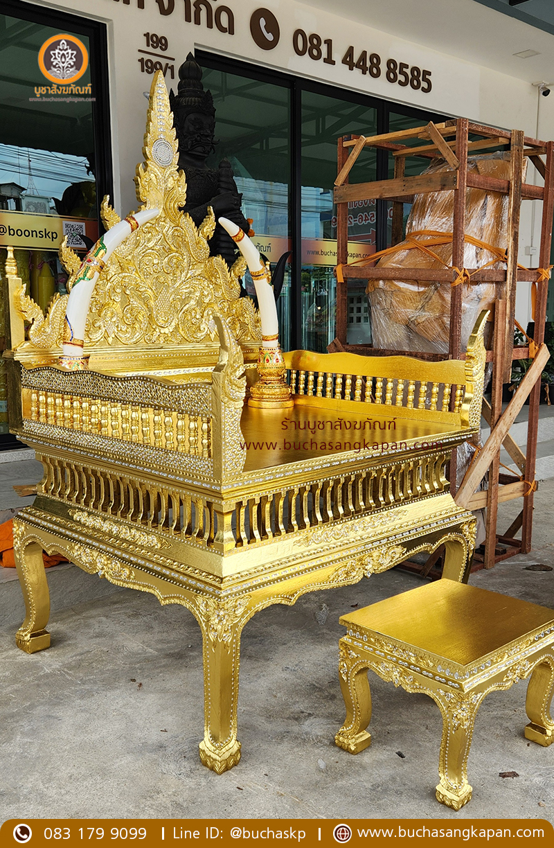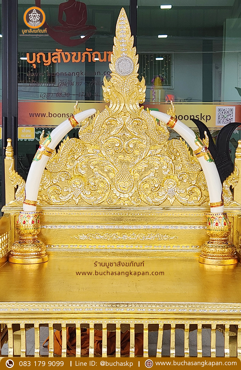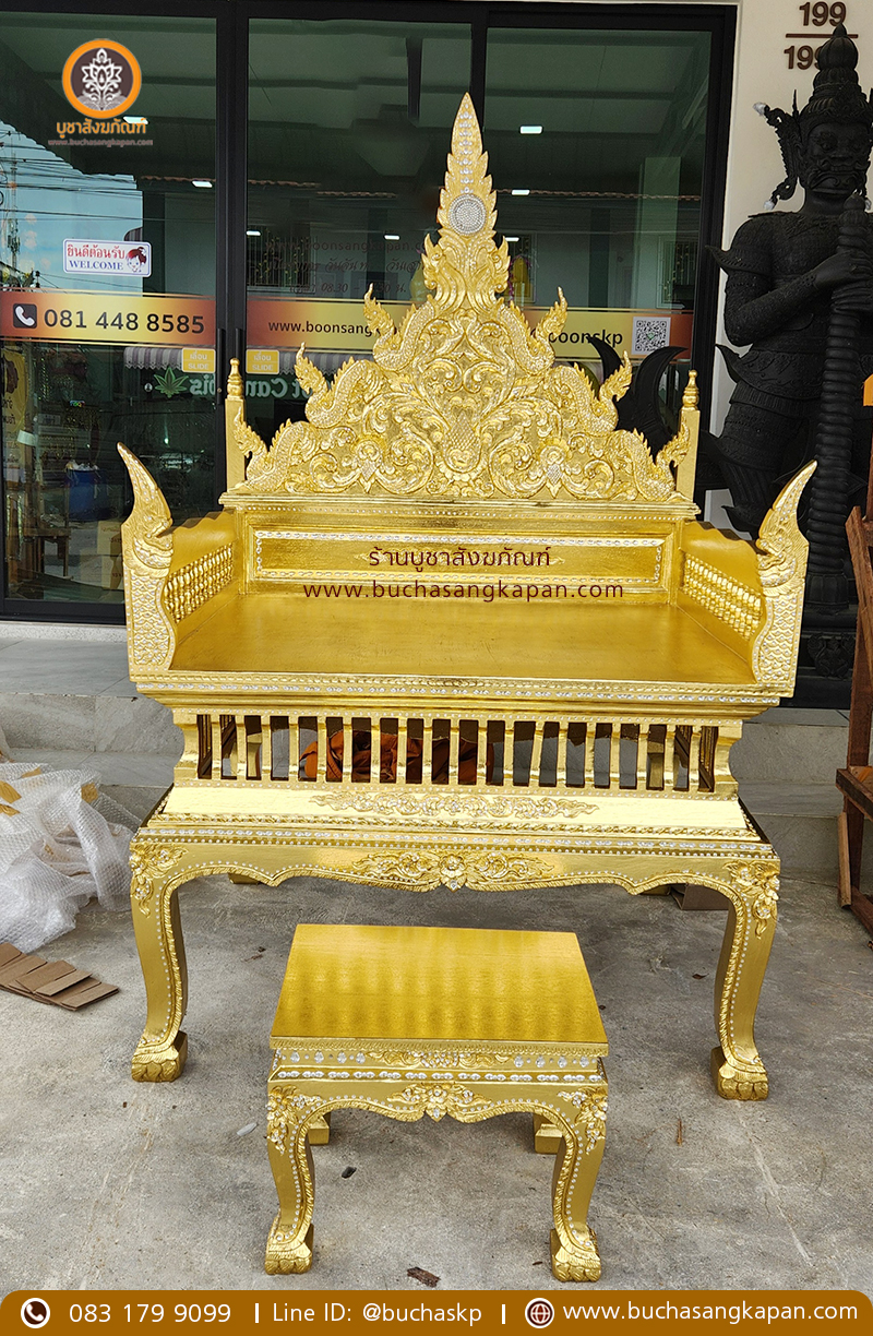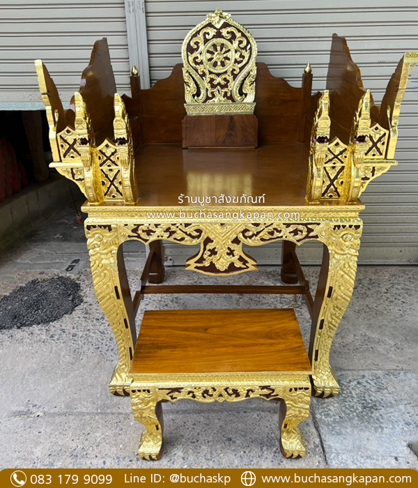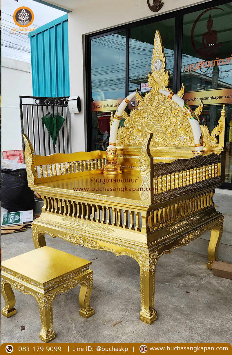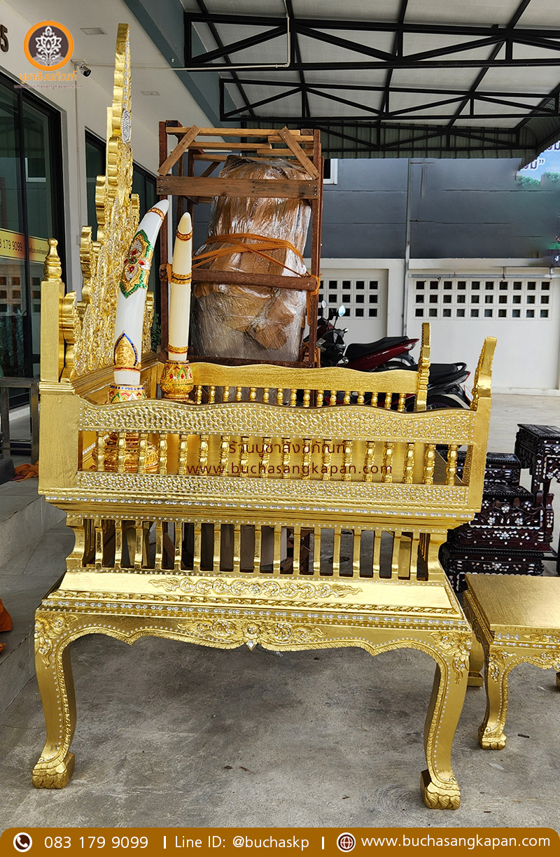 ธรรมมาสน์เทศน์ แกะลายไม้สัก ปิดทองประดับพลอย