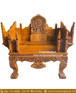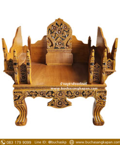 ธรรมมาสน์ไม้สักทั้งหลังใหญ่ สวยแข็งแรงแผง พญานาค ปิดทองเค ประดับกระจก