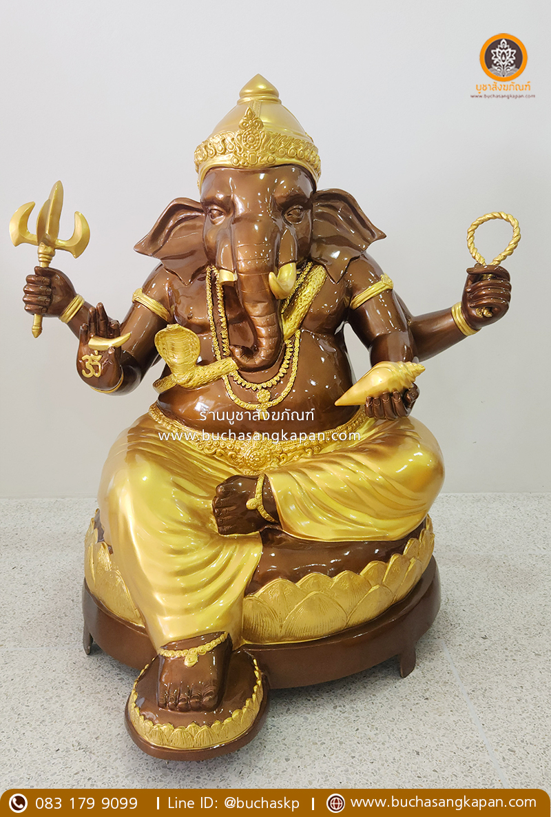 พระพิฆเนศ ทองเหลือง พ่นทอง-สีมันปู หน้าตัก 30 นิ้ว