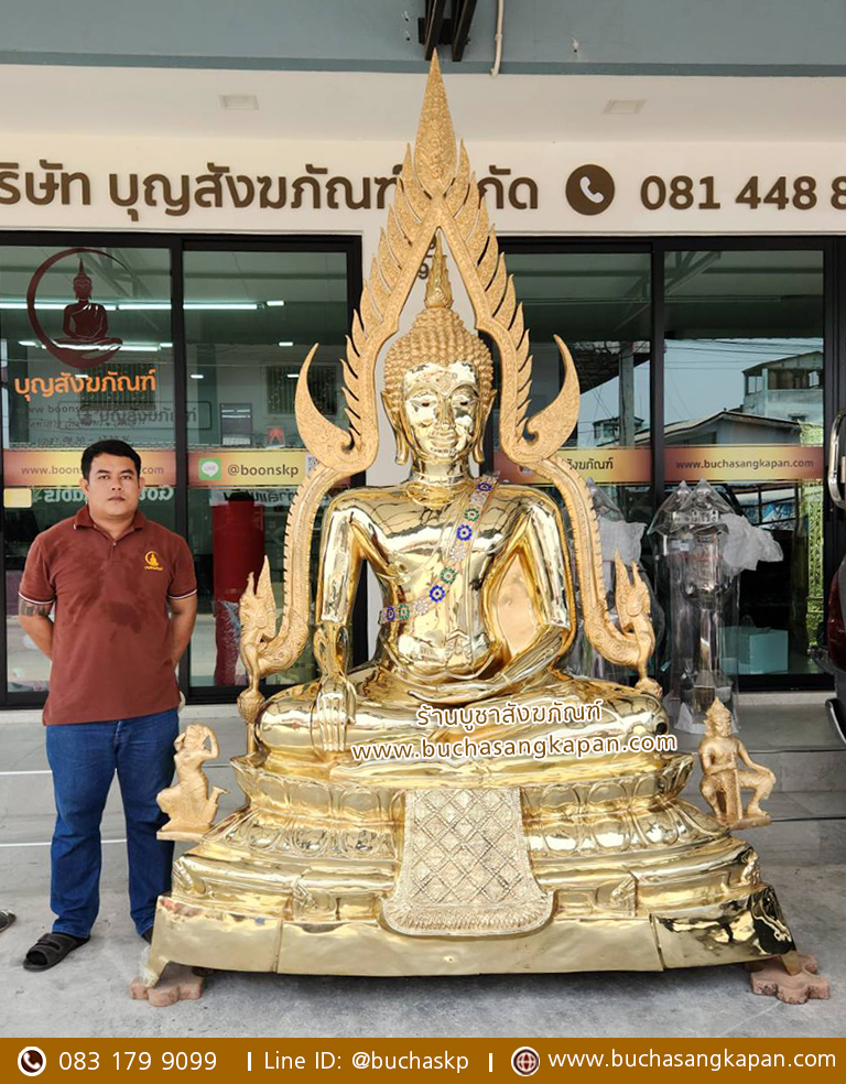 พระพุทธชินราช ทองเหลือง ขัดเงา ฐานบัว หน้าตัก 50 นิ้ว