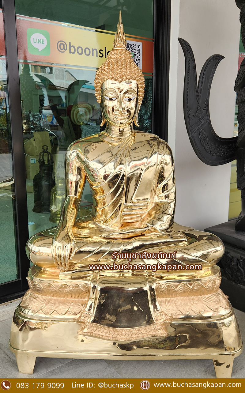 พระพุทธรูปปางมารวิชัย ทองเหลือง ขัดเงา หน้าตัก 30 นิ้ว