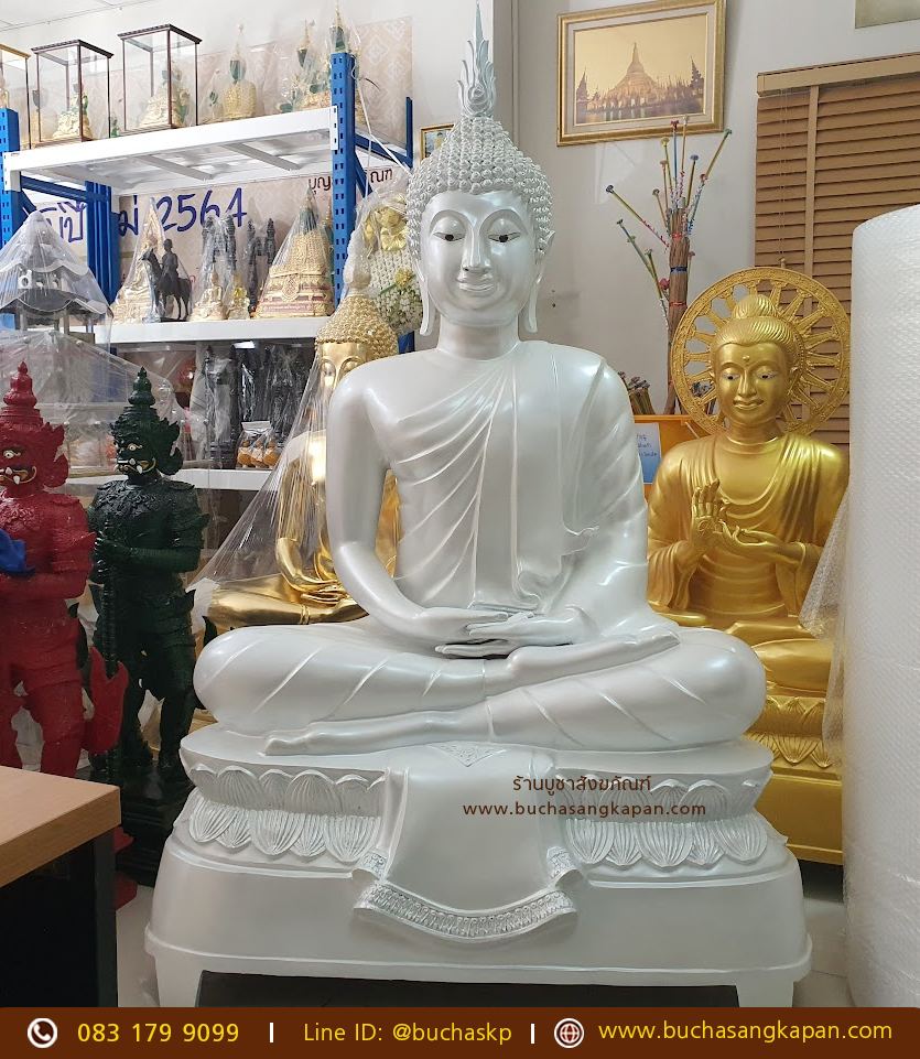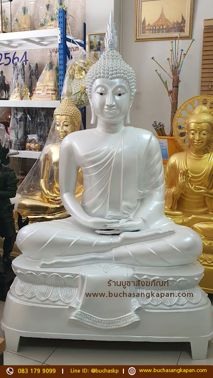พระพุทธรูปปางสมาธิ ทองเหลือง พ่นสีขาวมุก หน้าตัก 40 นิ้ว
