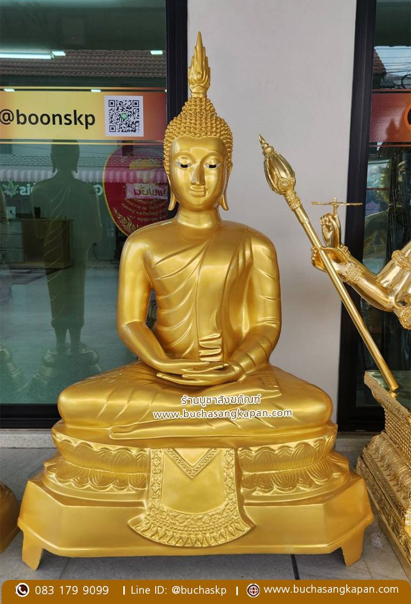 พระพุทธรูป อัลลอยด์ ผ่นทอง ปางมารวิชัย หน้าตัก 40 นิ้ว ฐานบัว