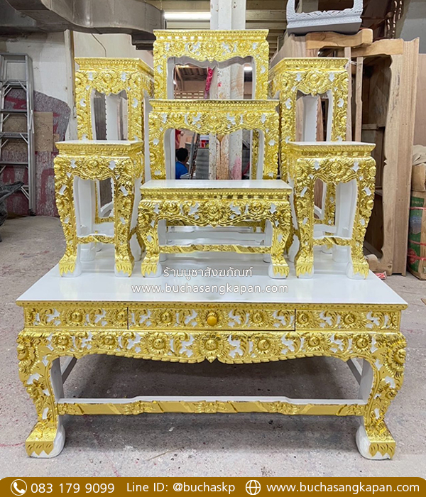 ราคาตรงจากโรงงาน โดยแต่ละชุด แต่ละตัวฝีมือปราณีต โต๊ะทุกตัวลงรักปิดทองอย่างดี